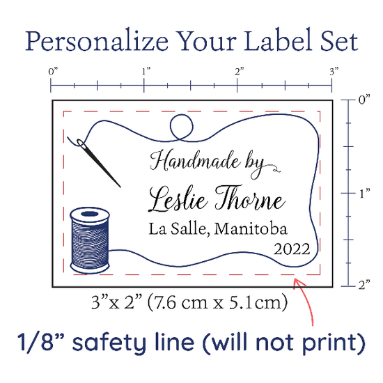 Personalized cotton labels measuring 2”x3”. Available as Flat tags in either sew on or iron on options. See below for full description and to design and preview your custom labels