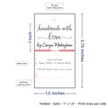 Personalized satin labels measuring 1”x1.5” once folded and sewn in. Printed with black ink on white satin ribbon. Cut edges should be sewn into a seam or turned under. See below for full description and to design and preview your custom labels.