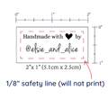 Personalized cotton labels measuring 2”x1”. Available as Flat or Fold Over tags in either sew on or iron on options. See below for full description and to design and preview your custom labels