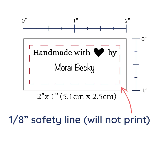 Personalized cotton labels measuring 2”x1”. Available as Flat or Fold Over tags in either sew on or iron on options. See below for full description and to design and preview your custom labels
