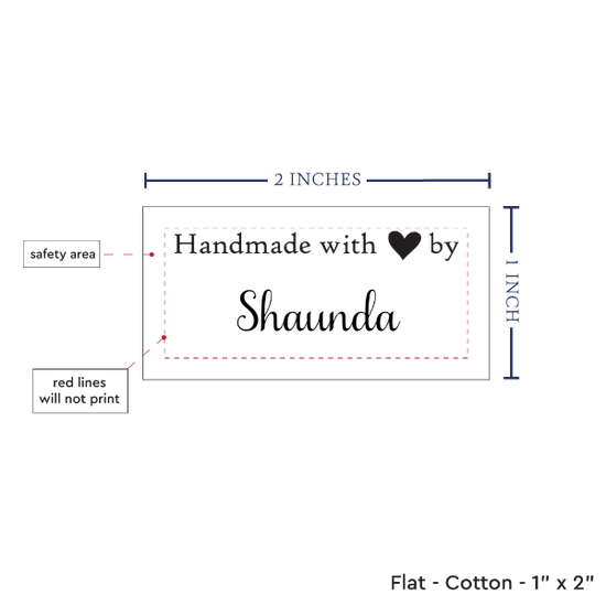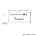 Personalized cotton labels measuring 2”x1”. Available as Flat or Fold Over tags in either sew on or iron on options. See below for full description and to design and preview your custom labels