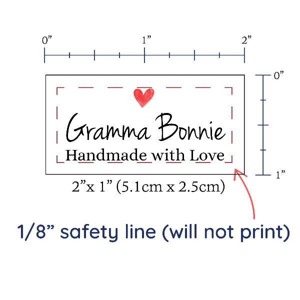 Personalized cotton labels measuring 2”x1”. Available as Flat or Fold Over tags in either sew on or iron on options. See below for full description and to design and preview your custom labels