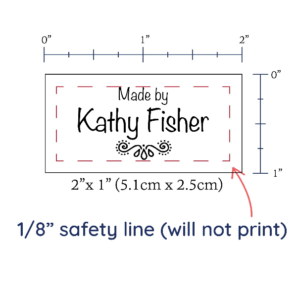Personalized cotton labels measuring 2”x1”. Available as Flat or Fold Over tags in either sew on or iron on options. See below for full description and to design and preview your custom labels
