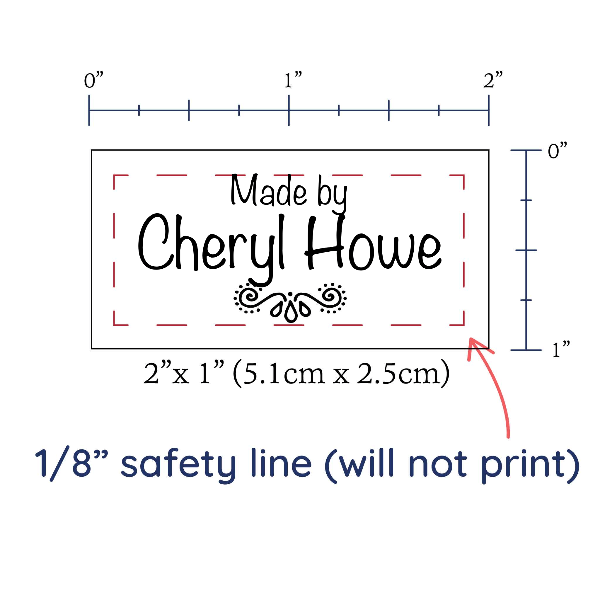 Personalized cotton labels measuring 2”x1”. Available as Flat or Fold Over tags in either sew on or iron on options. See below for full description and to design and preview your custom labels