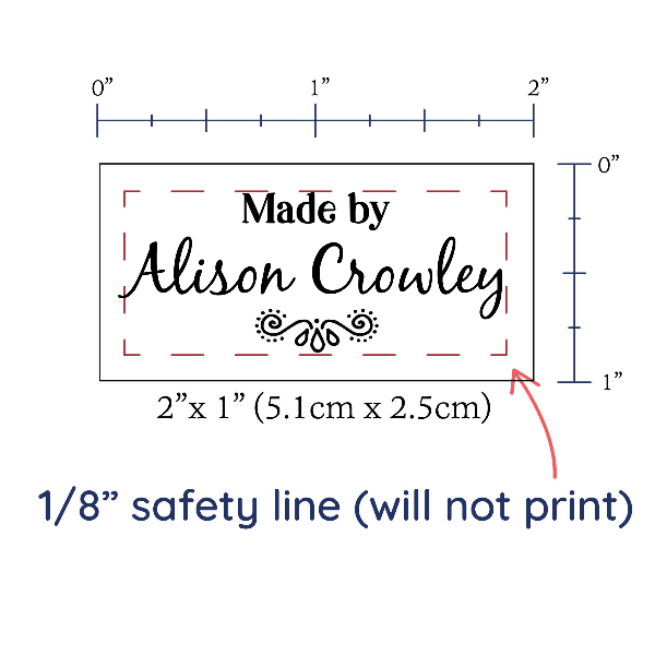 Personalized cotton labels measuring 2”x1”. Available as Flat or Fold Over tags in either sew on or iron on options. See below for full description and to design and preview your custom labels