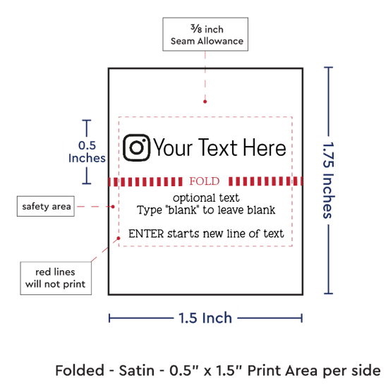 Personalized satin labels measuring 0.5”x1.5” once folded and sewn in. Printed with black ink on white satin ribbon. Cut edges should be sewn into a seam or turned under. See below for full description and to design and preview your custom labels.