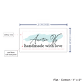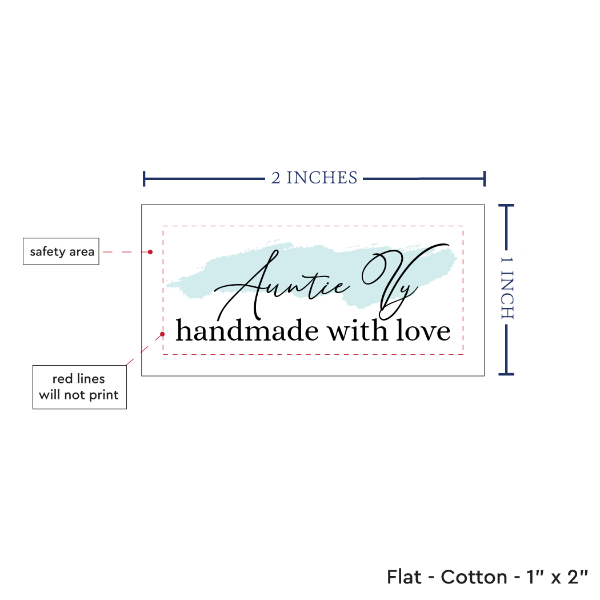 Personalized cotton labels measuring 2”x1”. Available as Flat or Fold Over tags in either sew on or iron on options. See below for full description and to design and preview your custom labels