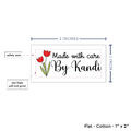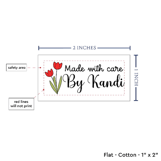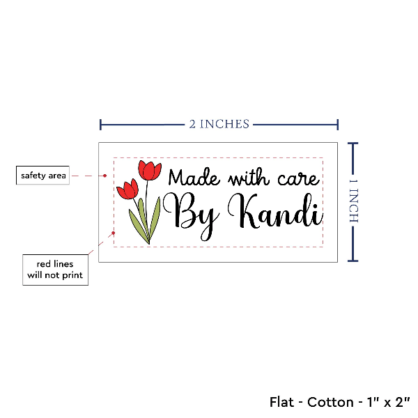 Personalized cotton labels measuring 2”x1”. Available as Flat or Fold Over tags in either sew on or iron on options. See below for full description and to design and preview your custom labels