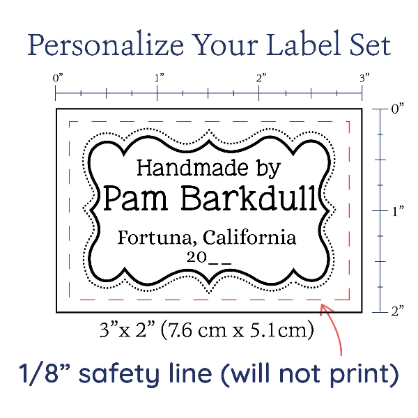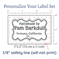 Personalized cotton labels measuring 2”x3”. Available as Flat tags in either sew on or iron on options. See below for full description and to design and preview your custom labels