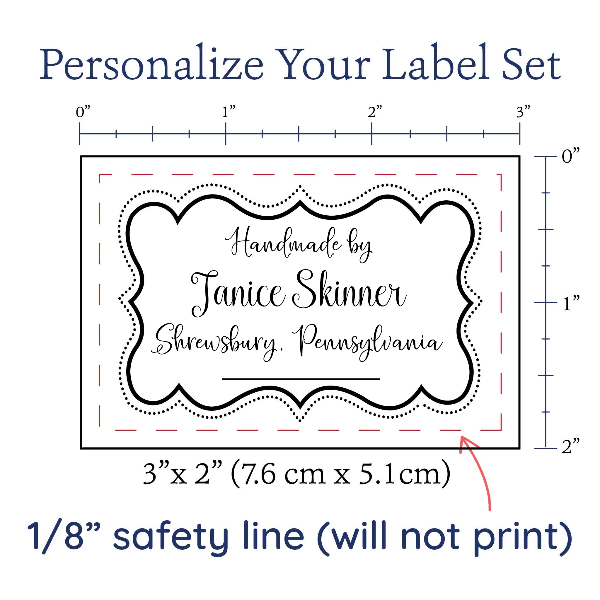 Personalized cotton labels measuring 2”x3”. Available as Flat tags in either sew on or iron on options. See below for full description and to design and preview your custom labels