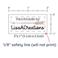 Personalized cotton labels measuring 2”x1”. Available as Flat or Fold Over tags in either sew on or iron on options. See below for full description and to design and preview your custom labels