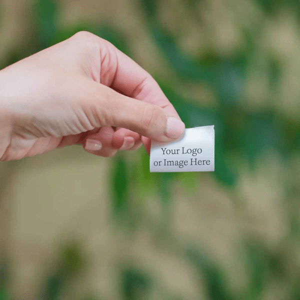 Personalized satin labels measuring 0.75”x1.5” once folded and sewn in. Printed with black ink on white satin ribbon. Cut edges should be sewn into a seam or turned under. See below for full description and to design and preview your custom labels.