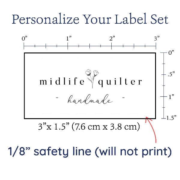 Personalized cotton labels measuring 1.5”x3”. Available as Flat labels in either sew on or iron on options. See below for full description and to design and preview your custom labels