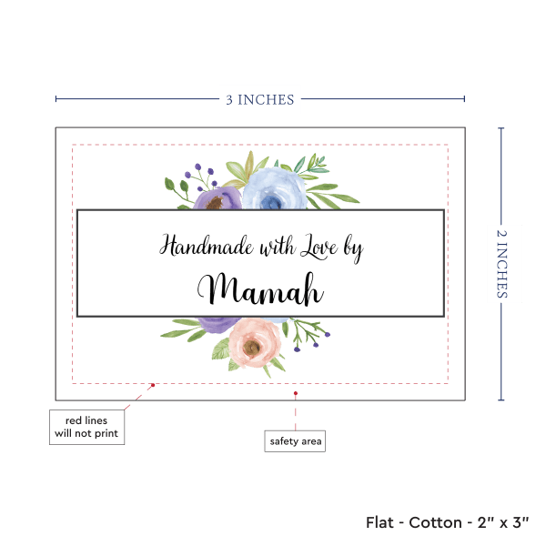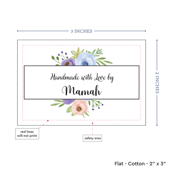 Personalized cotton labels measuring 2”x3”. Available as Flat tags in either sew on or iron on options. See below for full description and to design and preview your custom labels