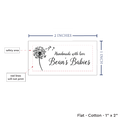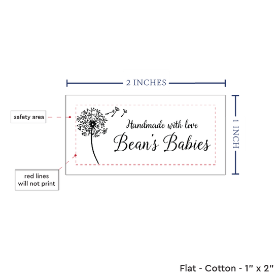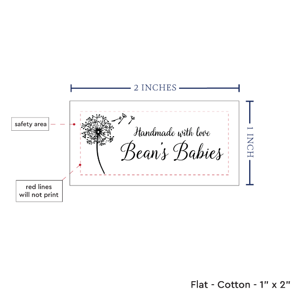 Personalized cotton labels measuring 2”x1”. Available as Flat or Fold Over tags in either sew on or iron on options. See below for full description and to design and preview your custom labels