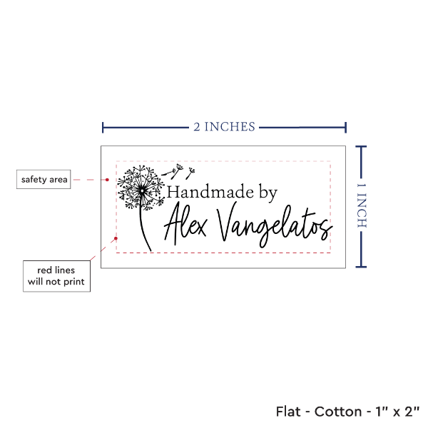 Personalized cotton labels measuring 2”x1”. Available as Flat or Fold Over tags in either sew on or iron on options. See below for full description and to design and preview your custom labels